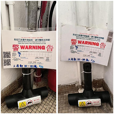 清洁承办商在清洗大厦后,在大厦公用地方内放置「T型鼠饵盒」。