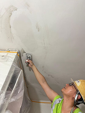 工人使用纳米纤维增强修补砂浆修复天花,批补并恢复至原来厚度。