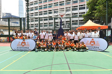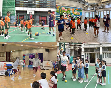 多元族裔学生参与多项运动体验,并与嘉宾在篮球场上合照。