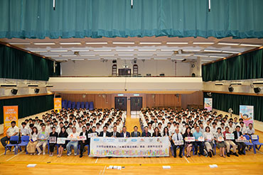 主礼嘉宾油尖旺区校长会主席梁冠芬校长(左一)、香港教育大学校长李子建教授(左四)、油尖旺民政事务专员余健强先生(右一)一同致送感谢状予主讲嘉宾:第14 届全国人民代表大会常务委员会委员、立法会内务委员会主席、「爱国主义教育工作小组」组长李慧琼博士(右三)、一国两制青年论坛创办人兼主席、特首政策组专家组成员、香港教育大学校董会成员何建宗博士(右二)、丽泽中学蔡丽芳副校长(左二)及大角嘴天主教小学潘伟强副校长(左三)。