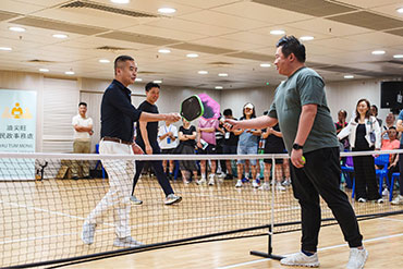 油尖旺民政事务专员余健强及主礼嘉宾参与匹克球表演赛。