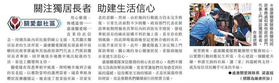 推长者关怀计划 关爱队助建活力社区 (文汇报A10版)