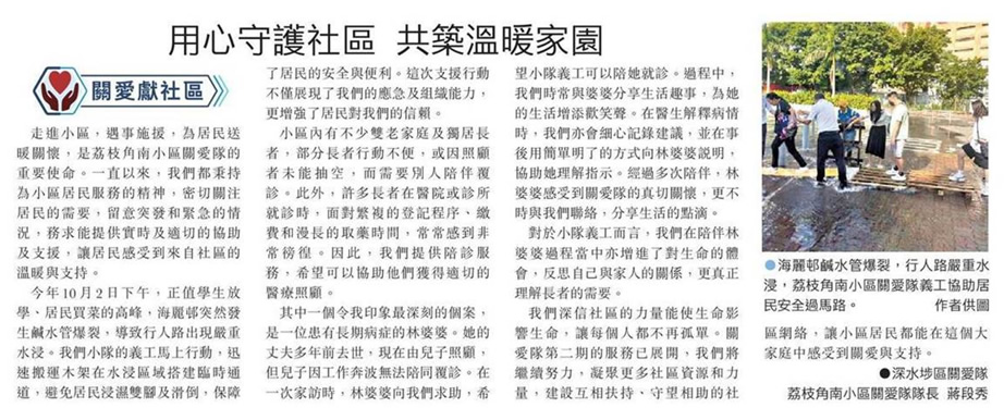 关爱队以爱为本 伸手助人为居民 (文汇报A4版)