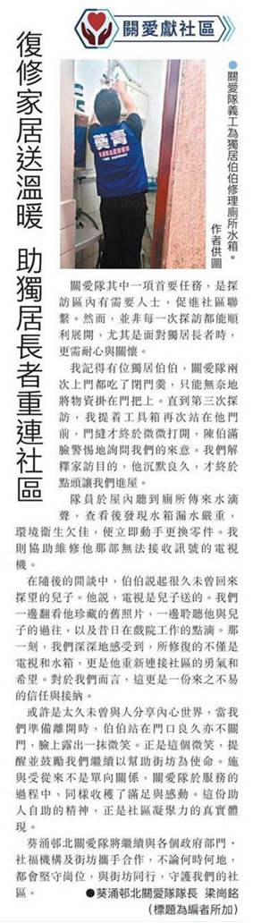 薄扶林关爱队:善用科技与街坊沟通 (文汇报A4版)