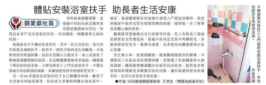 体贴安装浴室扶手 助长者生活安康(文汇报 A16版)